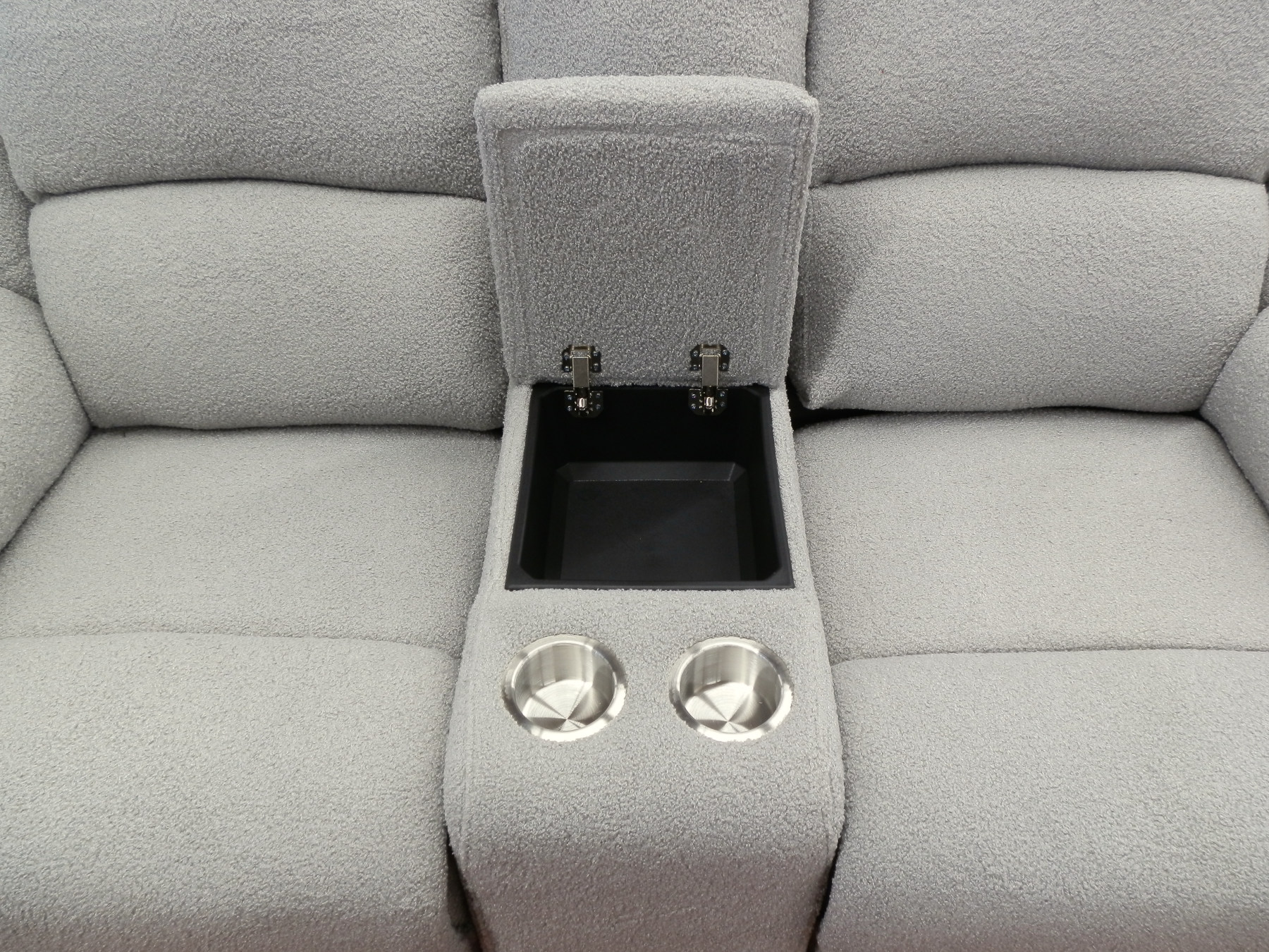 Loveseat Features Lidded Cubby With 2 Cup Holders
